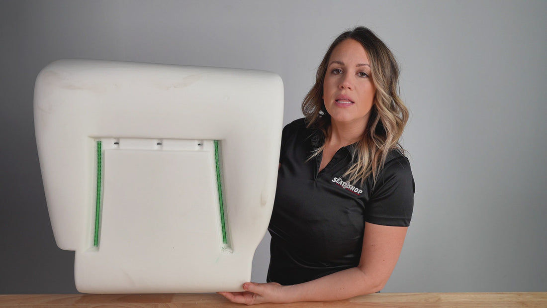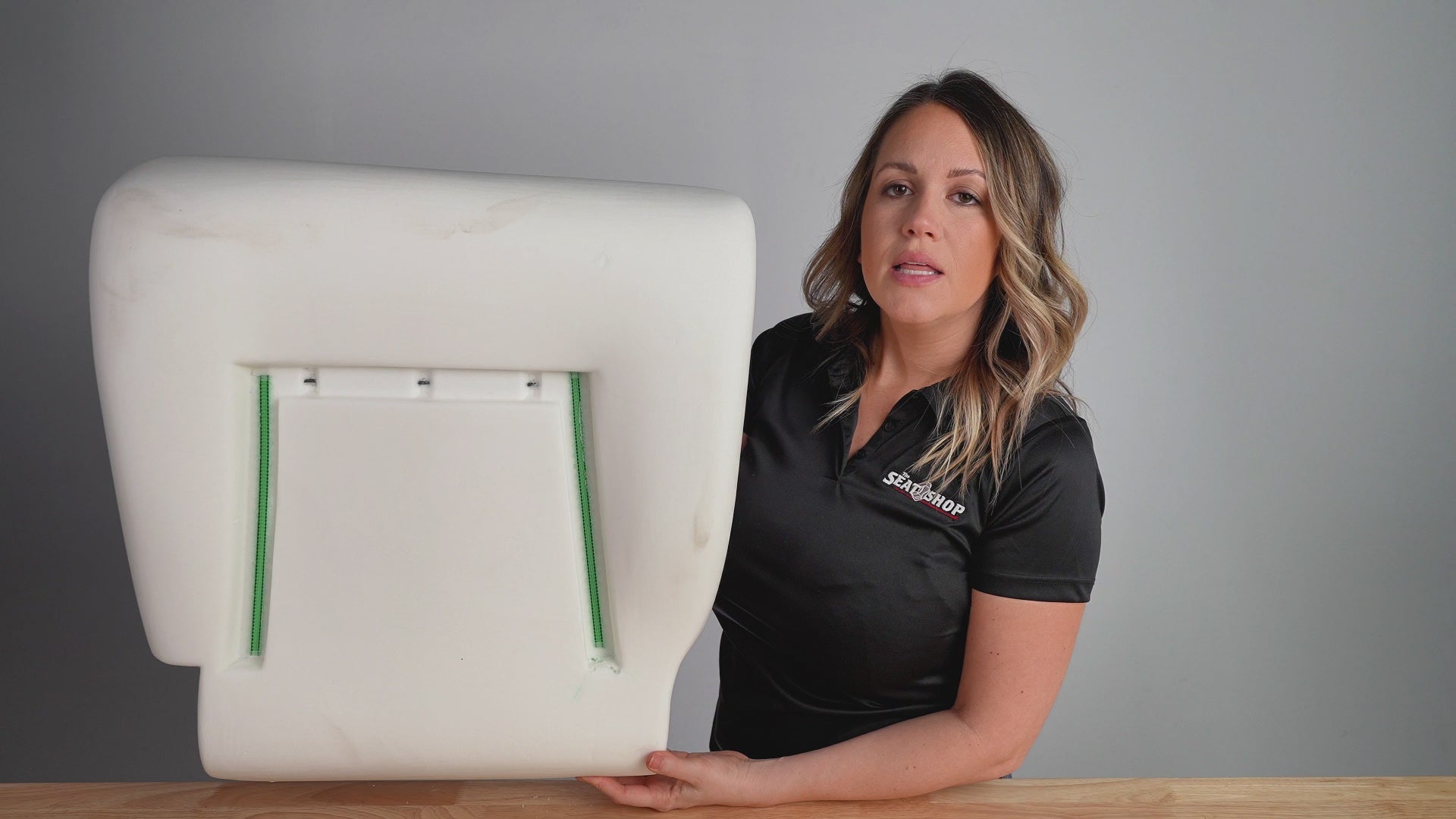 We no longer carry this Durofoam cushion in white. The foam you receive will be in our new Durofoam Blue Color! Pictures coming soon.