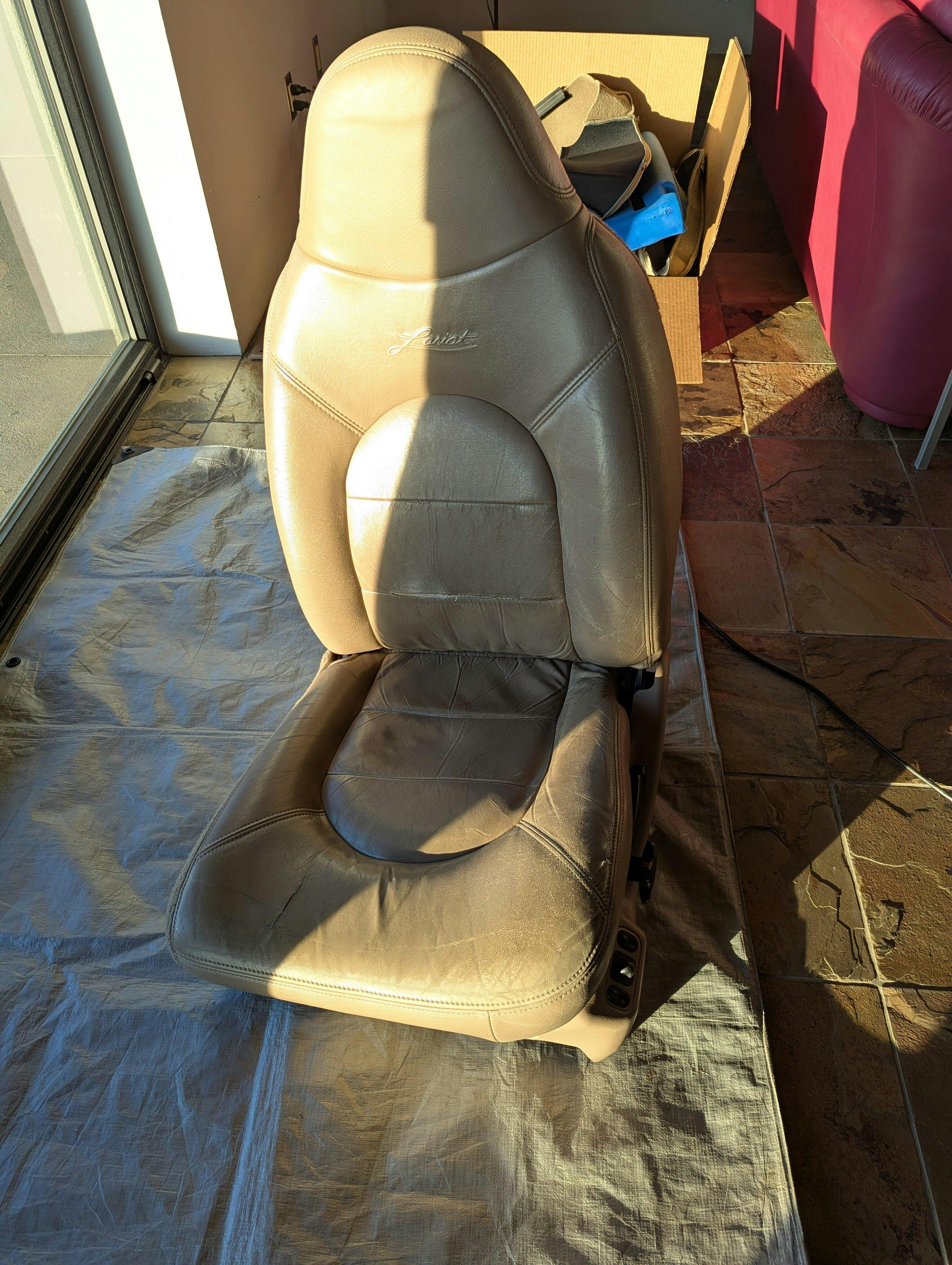 This replacement cover is manufactured using a leather seating surface and vinyl side skirting. Our research and development team has matched the color, grain, and fitment from your original cover. Each panel is digitally cut, and then sewn to OEM specifications to ensure a proper fit. This cover is NOT A SLIP ON, but will replace the existing cover. The Seat Shop is the AUTHORITY in factory match replacement leather seat covers! Are you tired of the old, worn out seats in your vehicle? We manufacture our brand new OEM style replacement seat covers in Dallas, Texas.