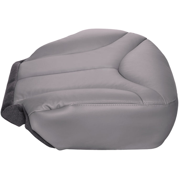 This replacement cover is manufactured using a vinyl seating surface and vinyl side skirting. Our research and development team has matched the color, grain, and fitment from your original cover. Each panel is digitally cut, and then sewn to OEM specifications to ensure a proper fit. This cover is NOT A SLIP ON, but will replace the existing cover. The Seat Shop is the AUTHORITY in factory match replacement leather seat covers! Are you tired of the old, worn out seats in your vehicle? We manufacture our brand new OEM style replacement seat covers in Dallas, Texas.