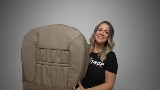 This replacement cover is manufactured using a leather seating surface and vinyl side skirting. Our research and development team has matched the color, grain, and fitment from your original cover. Each panel is digitally cut, and then sewn to OEM specifications to ensure a proper fit. This cover is NOT A SLIP ON, but will replace the existing cover. The Seat Shop is the AUTHORITY in factory match replacement leather seat covers! Are you tired of the old, worn out seats in your vehicle? We manufacture our brand new OEM style replacement seat covers in Dallas, Texas.