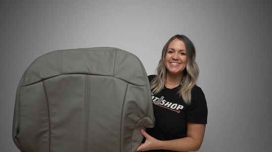 This replacement cover is manufactured using a vinyl seating surface and vinyl side skirting. Our research and development team has matched the color, grain, and fitment from your original cover. Each panel is digitally cut and then sewn to OEM specifications to ensure a proper fit. This cover is NOT A SLIP-ON, but will replace the existing cover. The Seat Shop is the AUTHORITY in factory match replacement leather seat covers! Are you tired of the old, worn-out seats in your vehicle? We manufacture our brand new OEM-style replacement seat covers in Dallas, Texas.