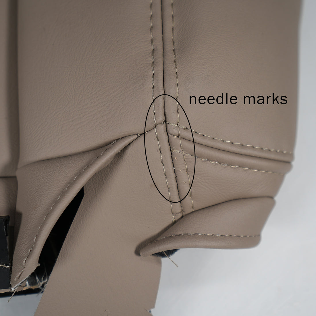 This replacement cover is manufactured using a vinyl seating surface and vinyl side skirting. Our research and development team has matched the color, grain, and fitment from your original cover. Each panel is digitally cut and then sewn to OEM specifications to ensure a proper fit. This cover is NOT A SLIP-ON, but will replace the existing cover. The Seat Shop is the AUTHORITY in factory match replacement leather seat covers! Are you tired of the old, worn-out seats in your vehicle? We manufacture our brand new OEM-style replacement seat covers in Dallas, Texas.