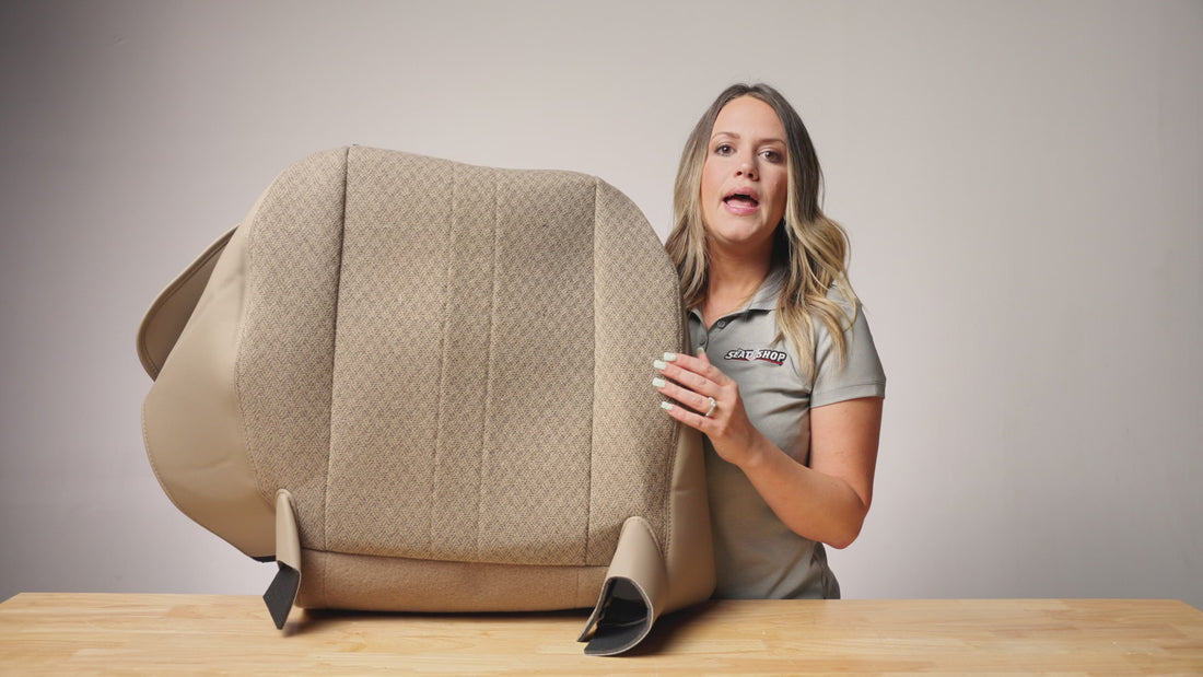 This replacement cover is manufactured using automotive grade Cloth. Our research and development team has matched the color, grain, and fitment from your original cover. Each panel is digitally cut, and then sewn to OEM specifications to ensure a proper fit. This cover is NOT A SLIP ON, but will replace the existing cover. The Seat Shop is the AUTHORITY in factory match replacement leather seat covers! Are you tired of the old, worn out seats in your vehicle? We manufacture our brand new OEM style replacement seat covers in Dallas, Texas.
