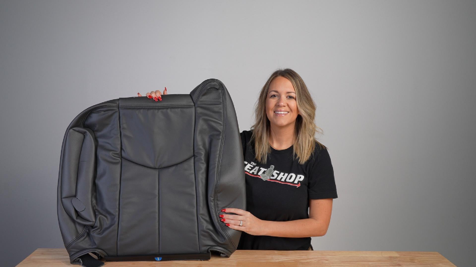 This replacement cover is manufactured using a leather seating surface and vinyl side skirting. Our research and development team has matched the color, grain, and fitment from your original cover. Each panel is digitally cut, and then sewn to OEM specifications to ensure a proper fit. This cover is NOT A SLIP ON, but will replace the existing cover. The Seat Shop is the AUTHORITY in factory match replacement leather seat covers! Are you tired of the old, worn out seats in your vehicle? We manufacture our brand new OEM style replacement seat covers in Dallas, Texas.