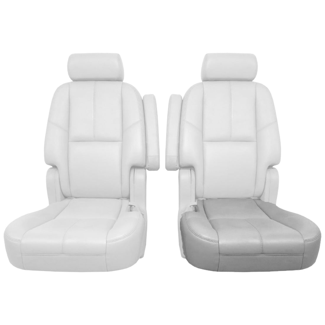 This replacement cover is manufactured using a vinyl seating surface and vinyl side skirting. Our research and development team has matched the color, grain, and fitment from your original cover. Each panel is digitally cut, and then sewn to OEM specifications to ensure a proper fit. This cover is NOT A SLIP ON, but will replace the existing cover. The Seat Shop is the AUTHORITY in factory match replacement vinyl seat covers! Are you tired of the old, worn out seats in your vehicle? We manufacture our brand new OEM style replacement seat covers in Dallas, Texas.