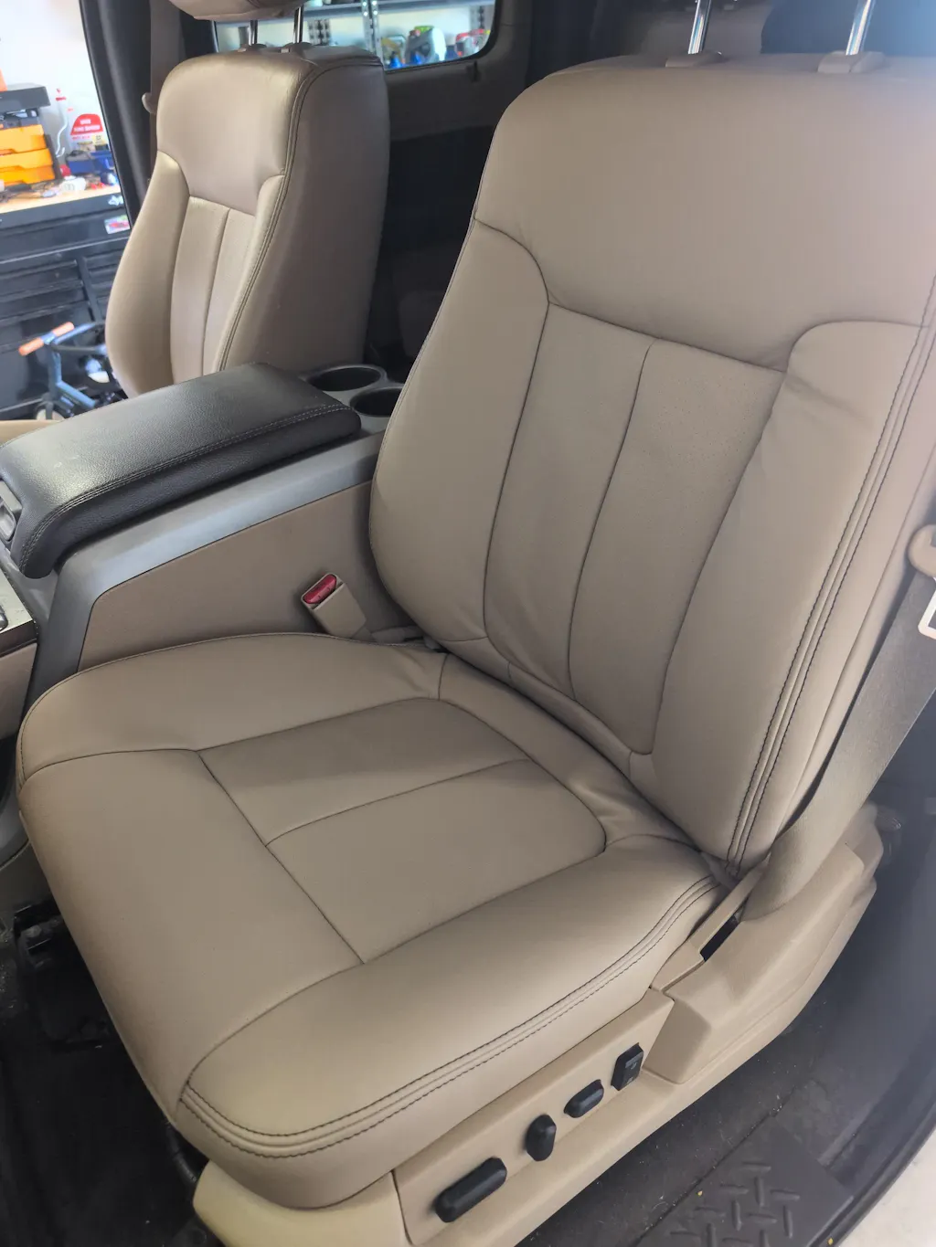 The Seat Shop is the AUTHORITY in factory match replacement leather seat covers! Are you tired of the old, worn out seats in your vehicle? We manufacture our brand new OEM style replacement seat covers in Dallas, Texas. This replacement cover is manufactured using a leather seating surface and vinyl side skirting. Our research and development team has matched the color, grain, and fitment from your original cover. Each panel is digitally cut, and then sewn to OEM specifications to ensure a proper fit.